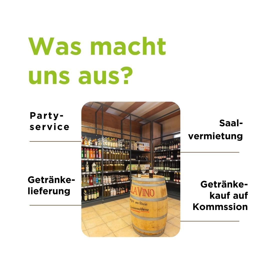 - Getränke auf Bestellung: Sollte ein gewünschtes Produkt nicht vorrätig sein, bestellen wir es gerne für Sie.